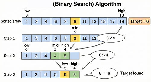 - Fast: Especially effective when dealing with large datasets. The number of searches needed grows logarithmically with the data size, making it very fast.
