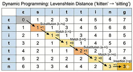 Example: Levenshtein Distance between “kitten” and “sitting”
